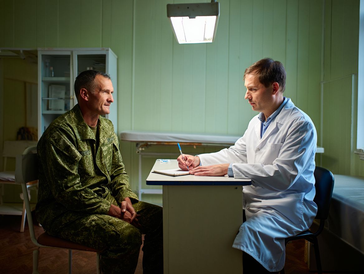 мужчина в военной форме на консультации у психиатра